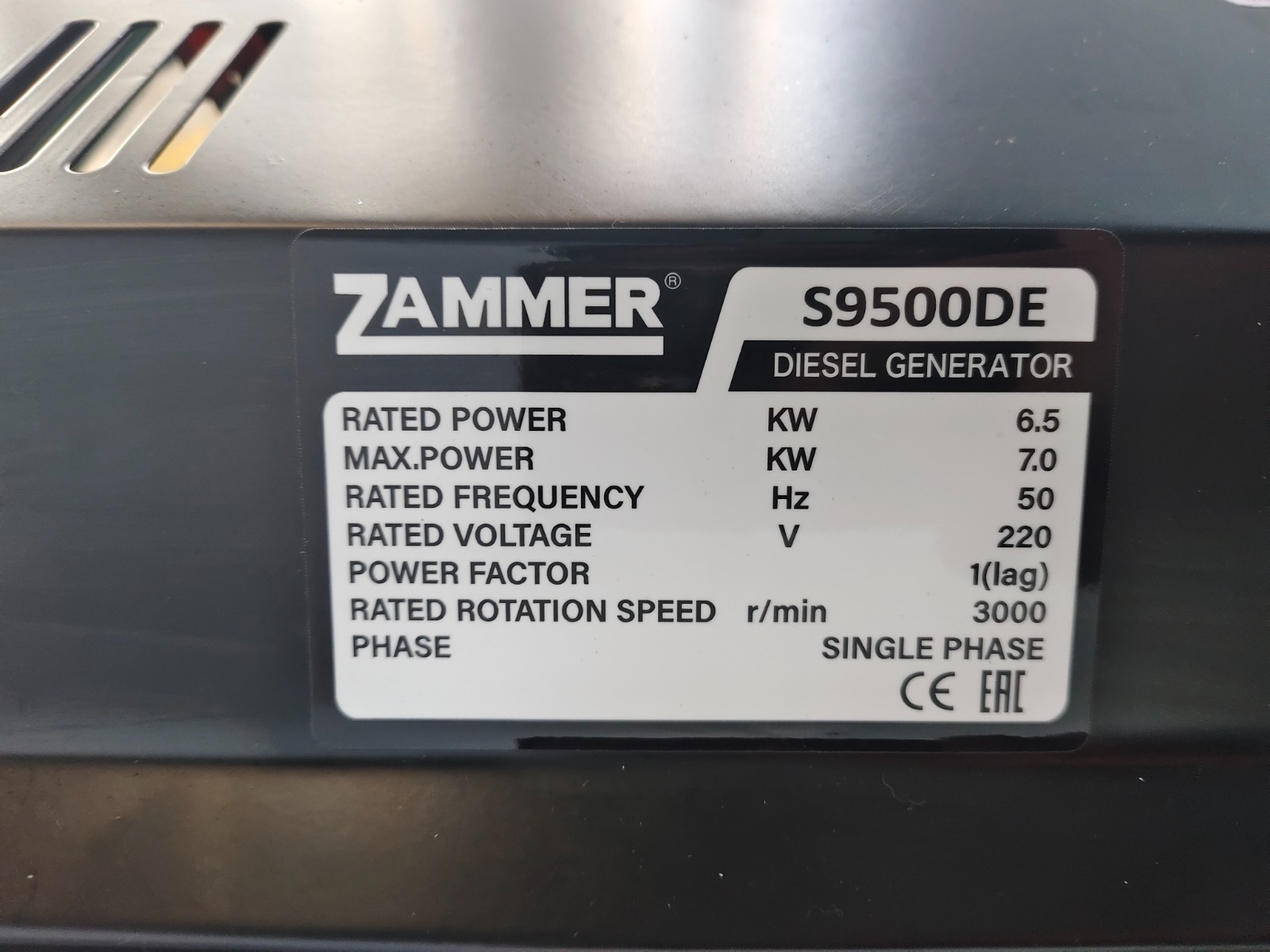 Отзывы ZAMMER S9500DE - 6,5кВт